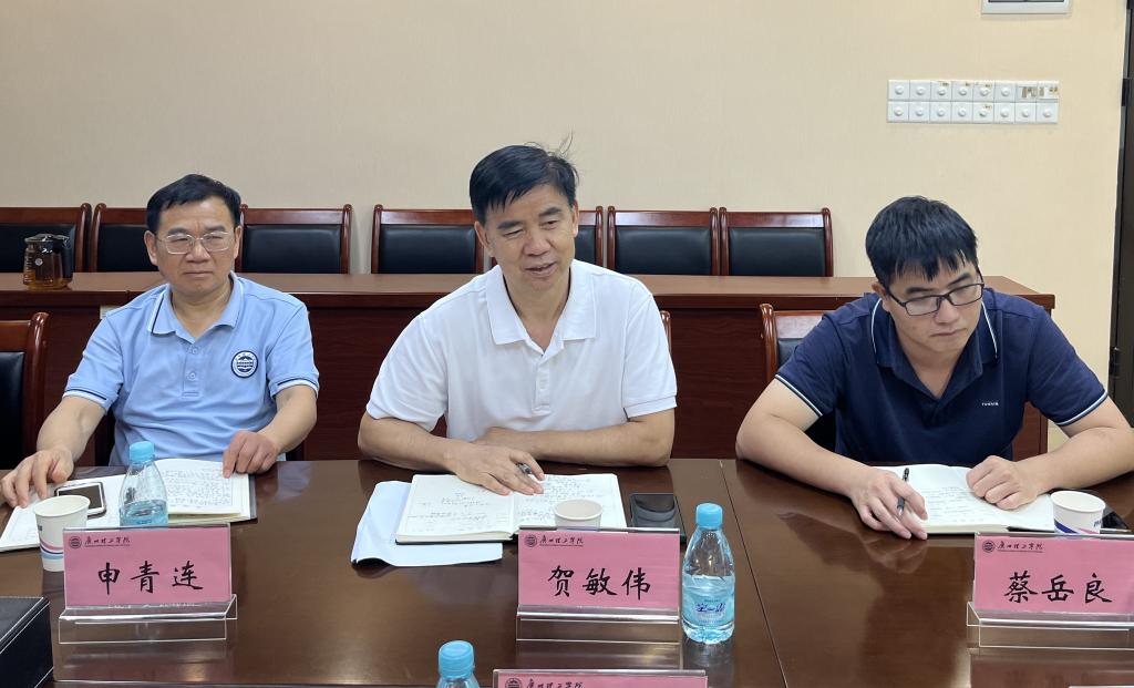 (图二)计算机学院贺敏伟院长(中)介绍学院工作情况