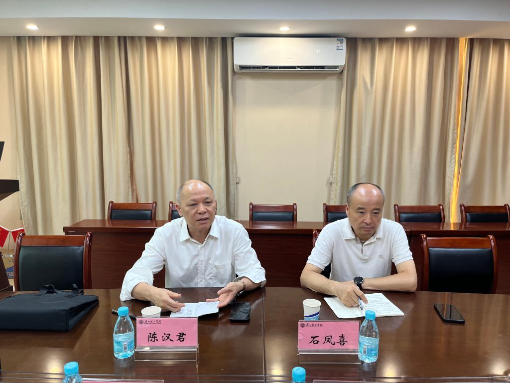 (图一)陈汉君副校长(左)和产教融合发展部石凤喜部长(右)调研交流