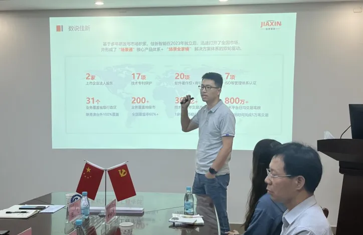 会上,佳新科技经理陈声棉详细介绍了公司的发展历程、业务范围以及在行业中的竞争优势和特色。佳新科技是一家以从事软件和信息技术服务业为主的企业,公司专注于软件开发、信息系统集成服务、人工智能应用软件开发、智能机器人的研发、物联网技术服务等多个领域。