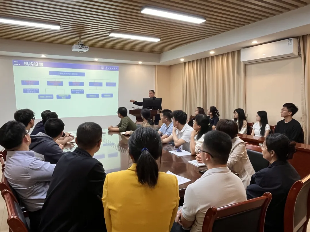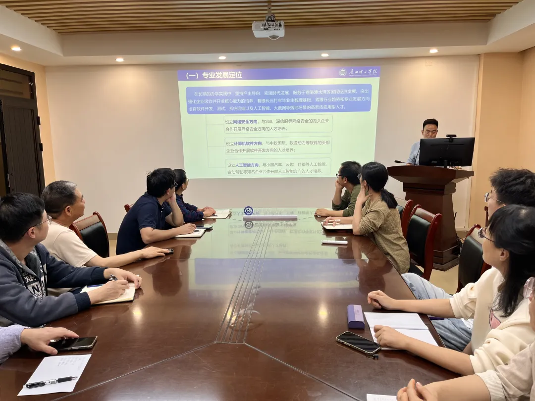 会上,院长石玉强系统阐述了学院的基本概况,涵盖学院现有的计算机科学与技术、网络工程、物联网工程、数字媒体技术四个全日制本科专业,详细介绍了学院独特的办学模式、机构设置,以及“十四五”时期在专业建设、课程建设、师资队伍建设、实验室建设、实践教学基地和产教融合等方面的发展规划。同时,石院长深入解读了学校人才培养目标定位,以及OBE理念在学院的落实思路、机制和措施。教学副院长申青连围绕应用型本科教学管理和质量监控体系建设展开分享,内容包括提升服务意识、优化工作思路、创新管理方法、完善制度体系以及加强教学档案建设等。他着重指出,近三年学院在各项工作中成绩斐然,各类奖项不断,通过详实的数据有力地展示了学院“教研赛一体化”的发展路径,为迎评促建筑牢根基,为培育高水平应用型人才提供坚实保障。系主任赵玉刚以计算机科学与技术专业为例,深入剖析了专业发展定位。该专业设立了网络安全、计算机软件、人工智能三个方向,并分别与360、深信服等网络安全龙头企业,中软国际、软通动力等软件行业头部企业,以及小鹏汽车、云趣、佳都等人工智能和自动驾驶领域知名企业开展合作,联合培养专业人才。赵主任还对人才培养目标、课程体系架构、专业对标建设目标、OBE人才培养理念、团队建设与教研活动、课程建设、教材建设、学科竞赛等建设内容进行了全面阐述。