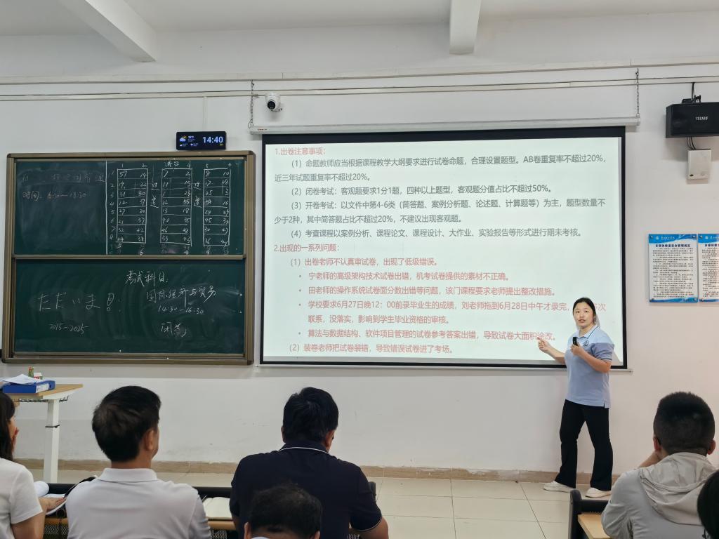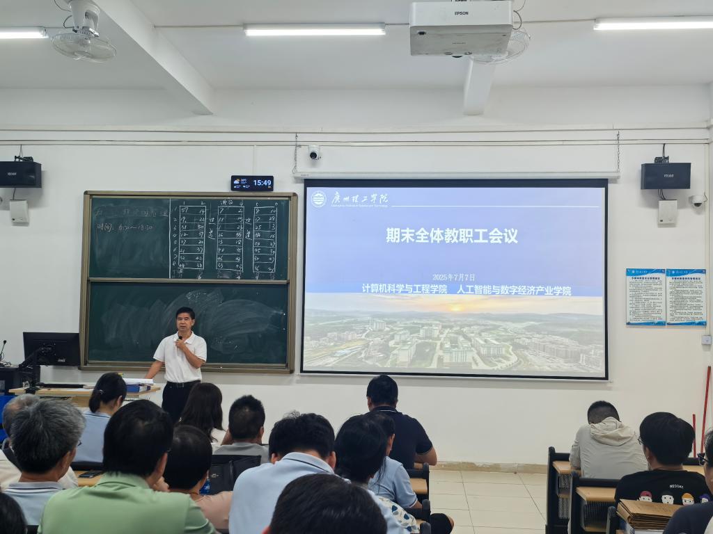 2025年7月7日,为切实做好本科教学合格评估准备工作,williamhill英国官网、人工智能与数字经济产业学院于6教101课室召开2025年春季学期期末教学评估工作专题会议。会议围绕试卷命题、教学资料归档、教学大纲整改等10项核心工作进行全面部署,学院领导班子、各系部主任、课程组组长及全体教师参加了此次会议。