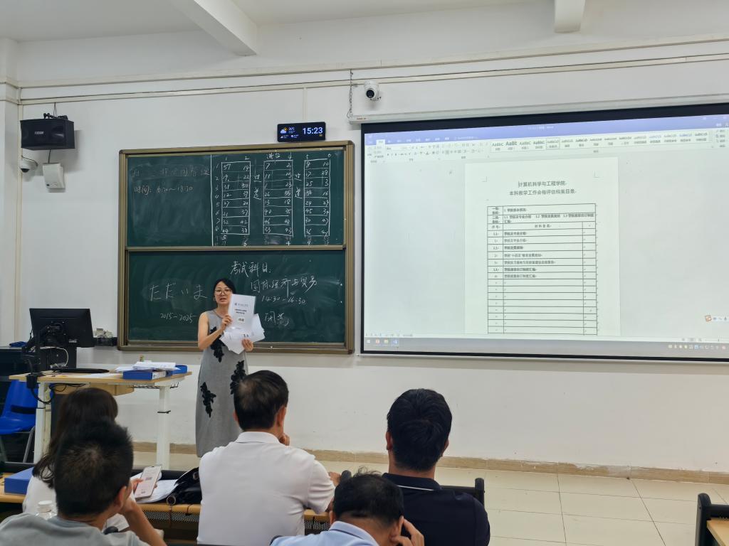 会议现场展示了叶谢琴老师建设的"5.0评估标准样板盒",要求所有评估材料按标准整改。程威霖老师演示了学院存储设备的标准化访问流程,要求所有评估材料于7月18日前完成数字化归档。针对青年教师培养,学院将实施"课程组+系主任"双导师制,并通过两轮全覆盖听课提升教学能力。